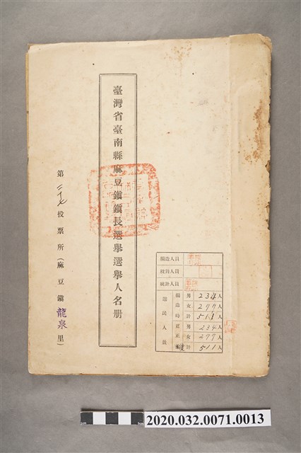 2020.032.0071.0013 臺灣省臺南縣麻豆鎮鎮長選舉人名冊龍泉里