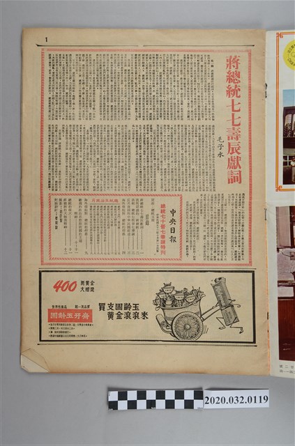 1.本物為《恭祝 總統七秩晉七華誕》特刊,於民國52年由中央日報發行。