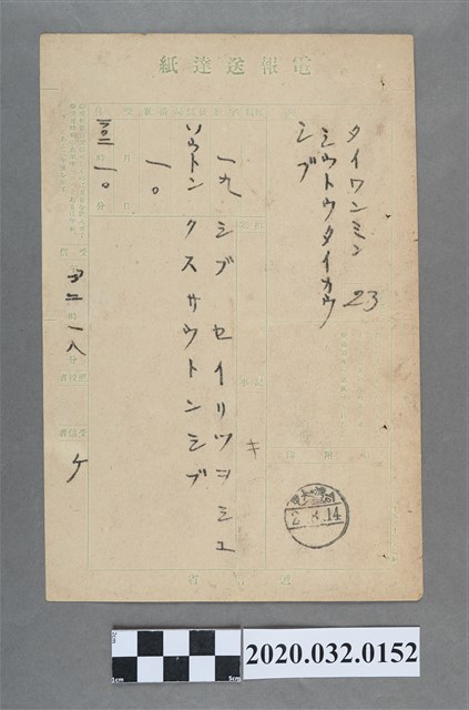 2020.032.0152 民眾黨草屯支部賀大甲支部成立電報送達紙