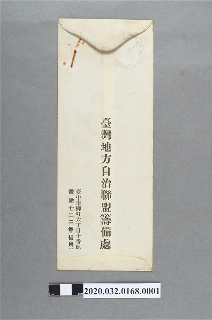 2020.032.0168.0001 大甲支部臺灣民眾黨本部落成式通知信封