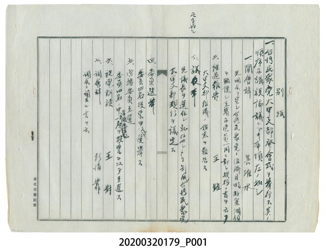 王錐向大甲郡守杉山靖憲提大甲支部發會式議程