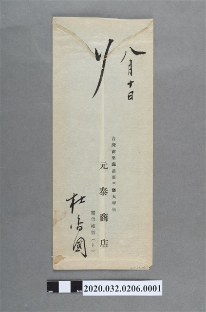 以元泰商行專用信封封箋,苗栗廳苗栗三堡大甲街