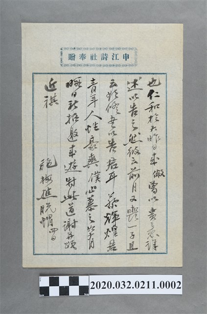 2020.032.0211 詩人施梅樵致元泰號杜香國書翰