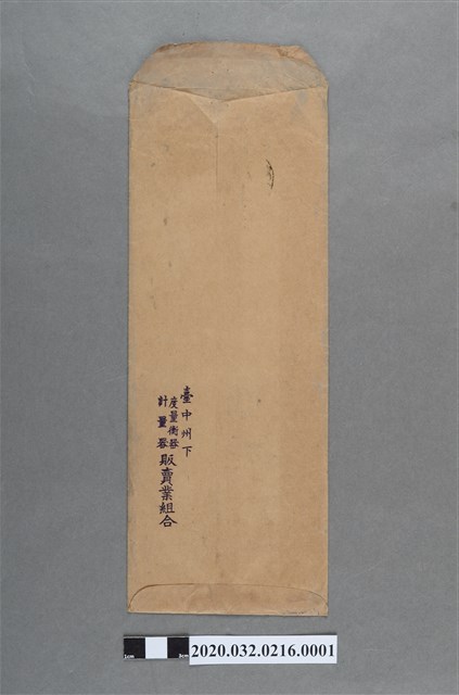 臺中州下度量衡器計量器販賣業者組合寄組合員杜清信封