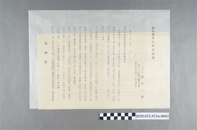 內有公約、呈秉總督小林躋造嘆願書、會計報告、信封