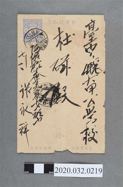 2020.032.0219 張永祥寄大甲公學校杜磁(杜香國)明信片