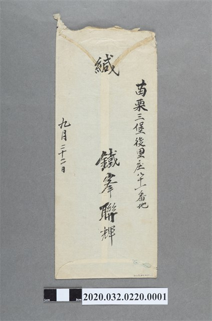 苗栗三堡鐵鋒聯輝(許聯輝)寄臺北國語學校國語部杜磁書翰