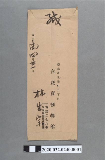 2020.032.0240.0001 永樂町官鹽賣捌總舘信封、專用信箋寄大稻埕大和行林成宗信封