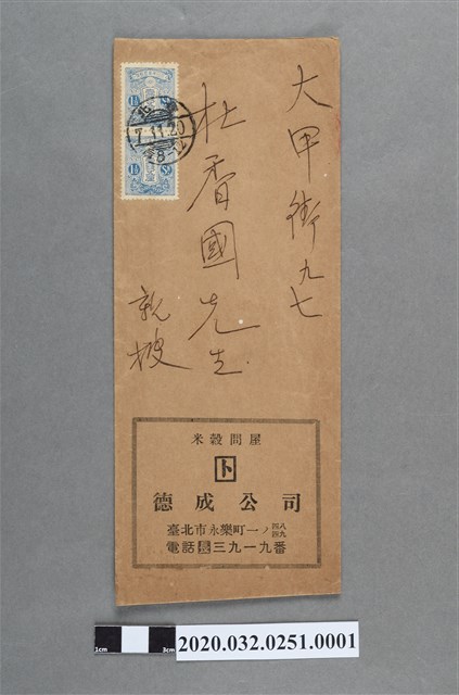 2020.032.0251.0001 永樂町米穀問屋德成公司劍影致杜香國信封