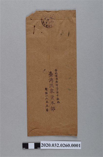 民眾黨本部寄杜香國通達本第36號關於支部財政收入支出之信封