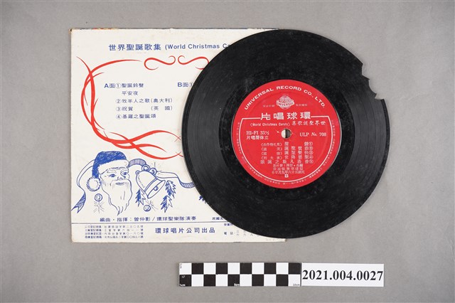 環球唱片公司出品《世界聖誕歌集》,唱片編號「ULP-708」,曾仲影編曲、指揮,環球聖樂隊演奏,民國56年9月20日出版,包括外封套、唱片等部分,定價15元。其中唱片有一角缺損。A面收錄〈聖誕鈴聲〉、〈牧羊人之歌〉、〈祝賀〉、〈基羅之聖誕頌〉,B面收錄〈鐘聲〉、〈恭賀聖誕〉、〈快樂聖誕〉、〈聖嬰降世〉、〈普洛凡斯之聖誕頌〉。