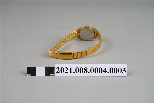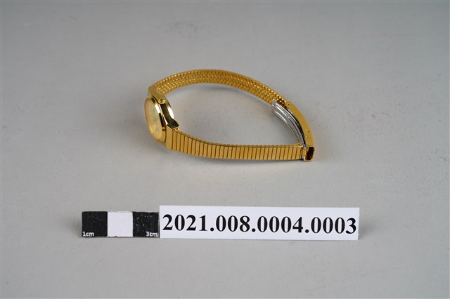民主進步黨於1987年9月28日建黨兩週年紀念品,金色對錶,裝於酒紅色盒中,手錶表面印有民進黨黨旗,此為女錶。同年7月蔣經國總統宣布解嚴,11月全國黨員代表大會決議:「人民有主張台灣獨立的自由。」姚嘉文當選第二屆黨主席。