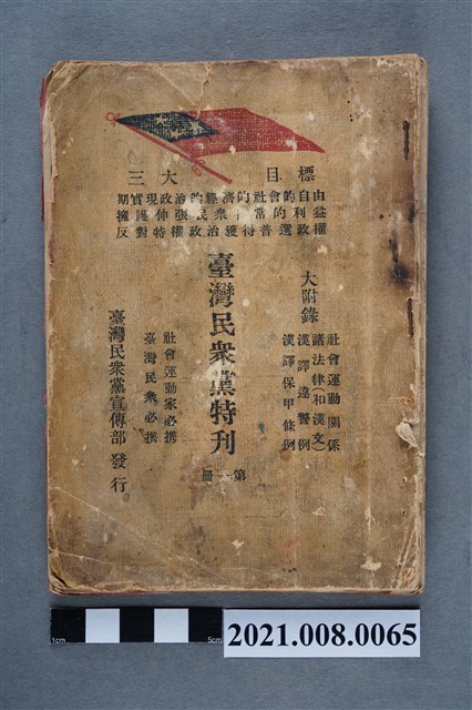 2021.008.0065 臺灣民眾黨宣傳部發行《臺灣民眾黨特刊》第一冊