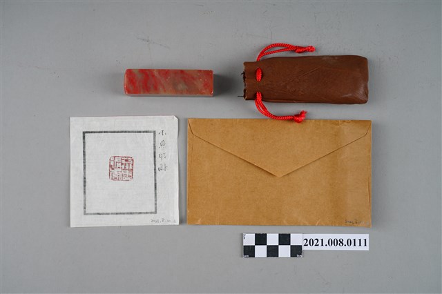 1. 陳郁秀女士印章,印章上刻有「郁秀女士雅心 公元兩千年小魚」,小魚(陳正隆)印章師傅。 小魚(陳正隆)除寄印章外,附手信一封。