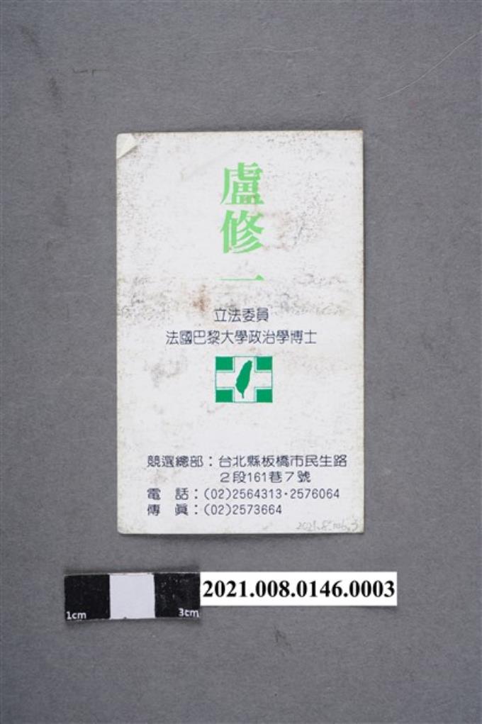 1. 放於盧修一記事本內,盧修一黑色款式名片,寫有盧修一學歷、立法委員、辦公室聯絡方式等資訊。