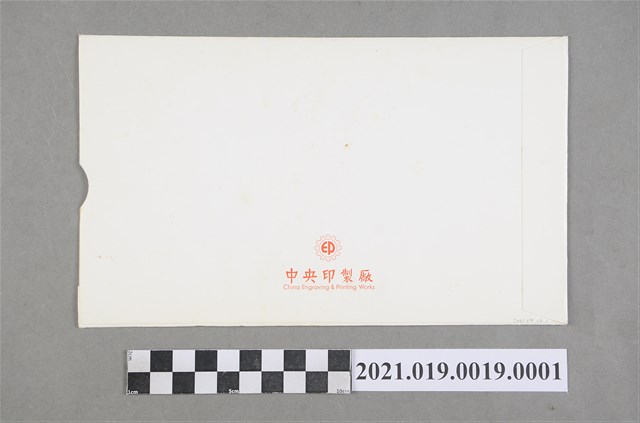 本物件為中央印製廠於1999年發行之「新台幣發行五十週年紀念性塑膠鈔券」封套,鈔券面額為50元。新台幣自民國三十八年(1949)6月15日發行,屆滿50年週年之際,印製三千萬張五十元紀念性塑膠鈔券,在本年度發行的紀念性貨幣中另有中央造幣廠所造之拾圓硬幣(並無收入於本批物件中)。五拾圓票券圖樣為,正面:表示新台幣發行歷史之「最早版式壹圓券與華三版壹佰圓券」,以及橋樑、高速公路、 鐵路、電子、通訊網路圖。 背面:中央銀行大樓及象徵中華文化之傳統圖飾 。票券上另有14處防偽功能標示。