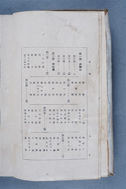 本件為日本詩人暨教育家後藤靜香(1884-1971)著《權威》,發行日期為昭和4年(1929)9月1日,發行者為東京希望社,本書收錄4篇26章詩作,並於卷頭收錄明治天皇御製詩歌248首,頁末收錄原田君代所作歌曲:「花が咲く」(花朵盛開)、「希望の民草」(希望的人民)本文物為梁乃悅先生捐贈伯父梁梓義之日本時代個人物品。