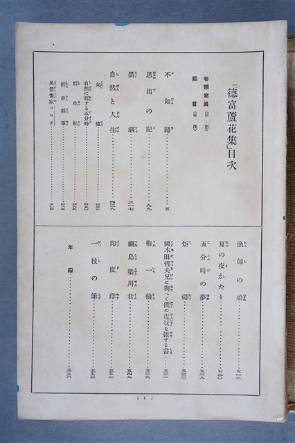 本件為日本作家德富健次郎(1868-1927)著《德冨蘆花集》,昭和2年(1927)10月5日發行,發行者為東京改造社,裝幀者杉浦非水(1876-1965)。本書為該社發行之「現代日本文學全集」中的第12集。本文物為梁乃悅先生捐贈伯父梁梓義之日本時代個人物品。