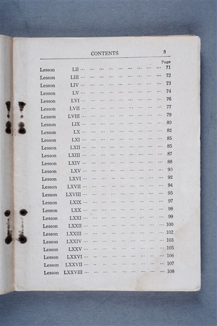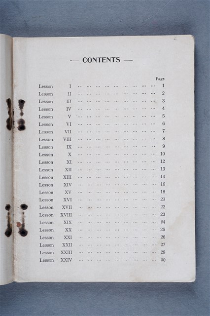 本件為教育家柴山格太郎(1901-2005)編《原文讀本》1,戰前日本井上通信英語學校發行的「井上英語講義錄附錄」。發行日期為昭和8年(1933)5月15日,井上通信英語學校印刷部發行,供英語閱讀學習之用。本文物為梁乃悅先生捐贈伯父梁梓義之日本時代個人物品。