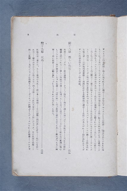 本件為William Henry Hudson著、壽岳しづ譯《遠方與往昔》,英文書名為:「Far Away And Long Ago」,日文譯名為:「はるかな国とほい昔」,本書為昭和14年(1939)11月10日第5刷,發行者為岩波書店,本書為作者的自傳作品,內容主要回憶童年於阿根廷的生活往事。本文物為梁乃悅先生捐贈伯父梁梓義之日本時代個人物品。