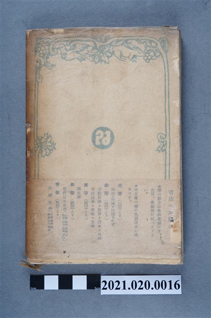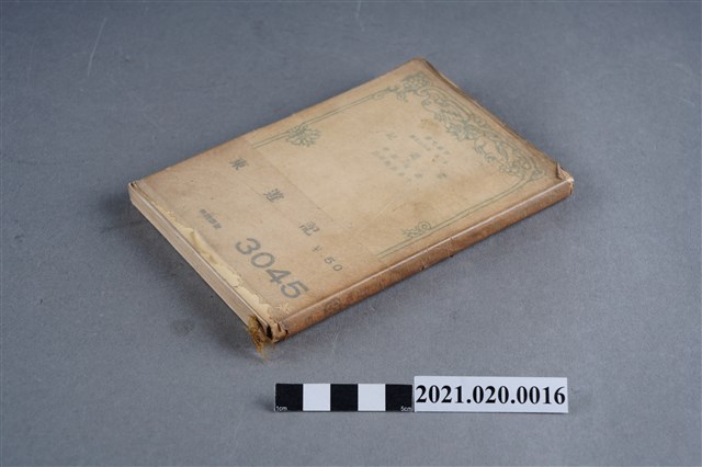 本件為橘南谿著、今泉忠義校註《東遊記》,昭和11年(1936)11月2日發行,發行者為改造社。橘南谿(1753-1805)為江戶時代後期之醫者,本名宮川春暉,字惠風,本書為南谿於天明4-6年(1784-1786)與門人養軒遊歷鎌倉、江戶、水戶、仙臺、奧羽、越中、加賀、越前、近江等地之見聞。本文物為梁乃悅先生捐贈伯父梁梓義之日本時代個人物品。