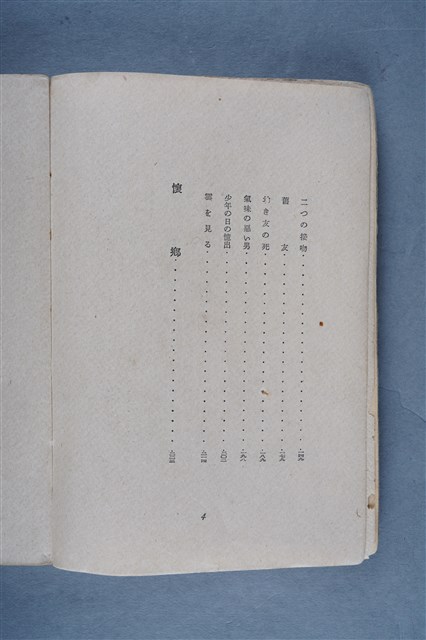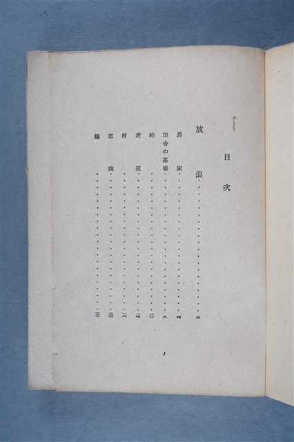 本件為Hermann Hesse(日文譯名:ヘルマン.ヘッセ)著、高橋健二譯《放浪と懐郷》(流浪與鄉愁),為昭和17年(1942)1月15日第九刷,由東京新潮社發行。本書收錄作者的幾種著作作品,包括:《流浪》(Wanderung)、《寓言集》(Fabulierbuch)、《鄉愁》(In der alten Sonne)等。本文物為梁乃悅先生捐贈伯父梁梓義之日本時代個人物品。