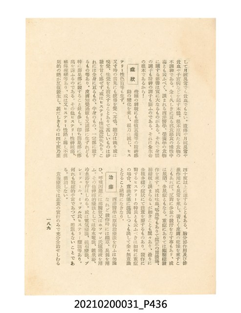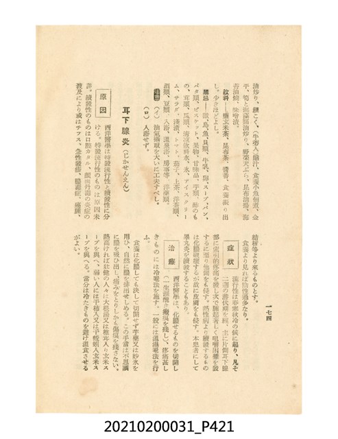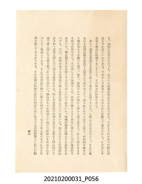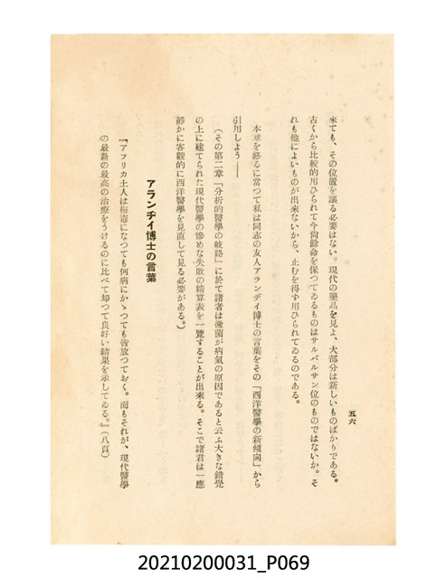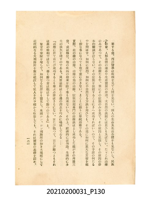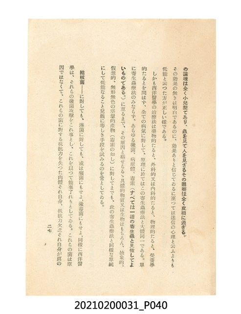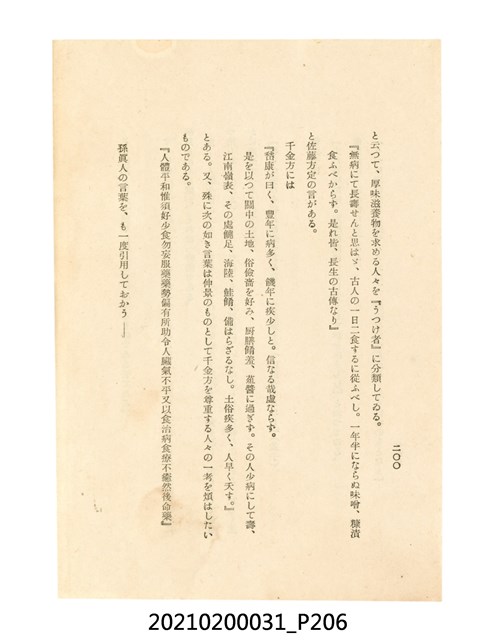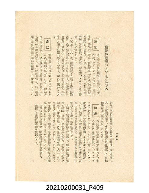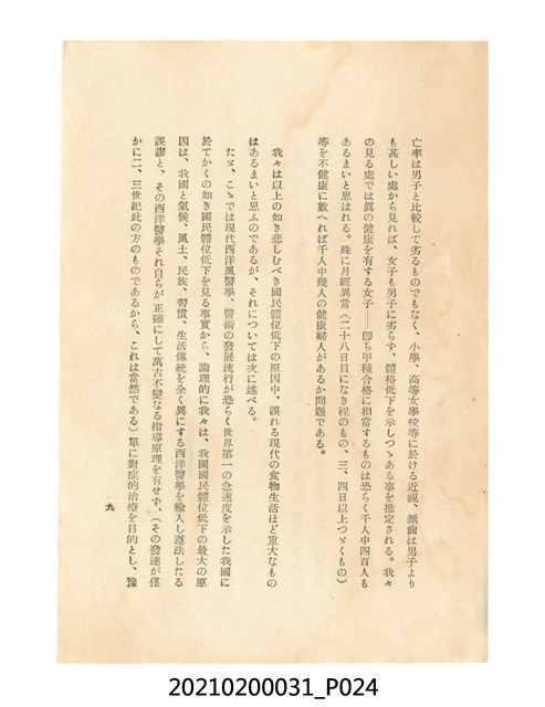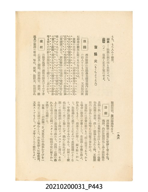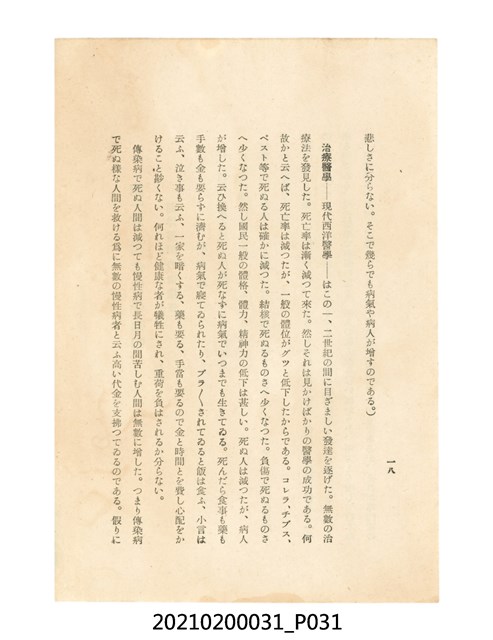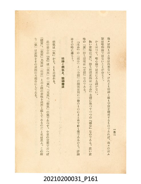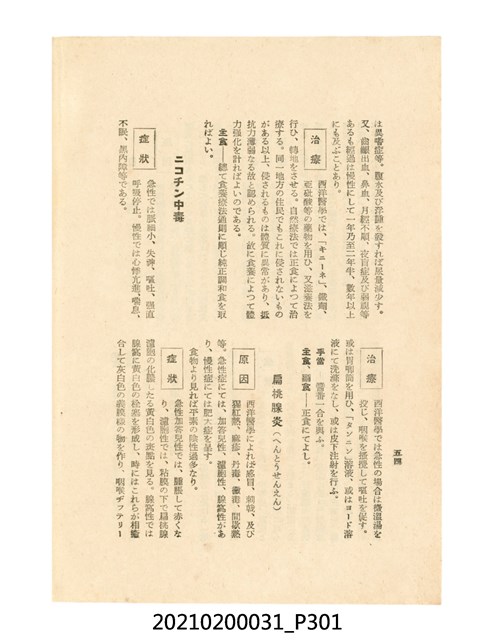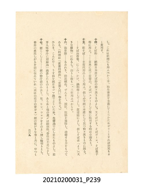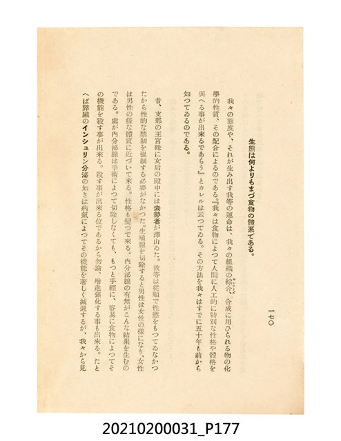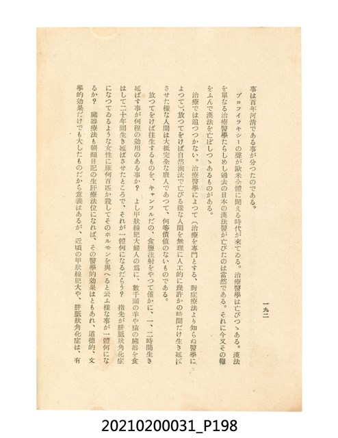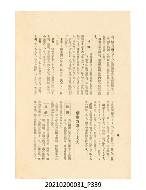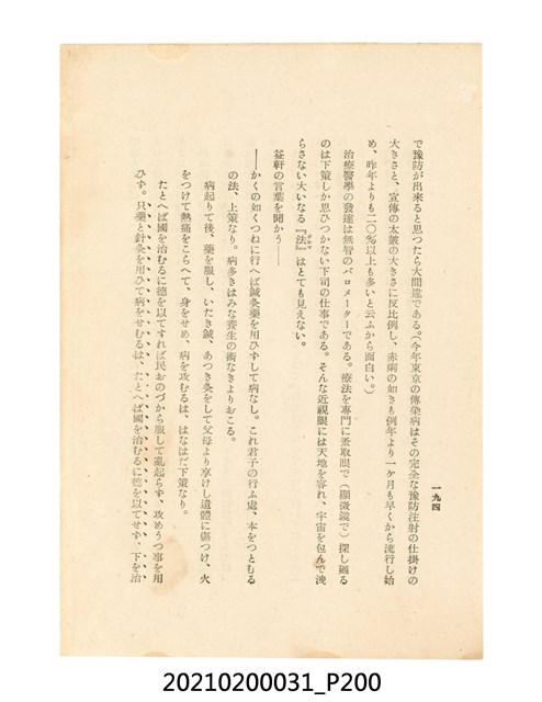 本件為櫻澤如一著《自然醫學》,副標題為:「日本食物療法總覽」,昭和14年(1939)10月20日4版,發行者為日本食養研究所,書籍共分五章,第一章為西洋醫學批判、第二章為「科學」的批判、第三章為新國民生活法的提倡、第四章為自然醫學的診斷法、第五章為食養療法、第六章為疾病的自然醫治法。書中內容主要為「自然醫學」的推廣。本文物為梁乃悅先生捐贈伯父梁梓義之日本時代個人物品。