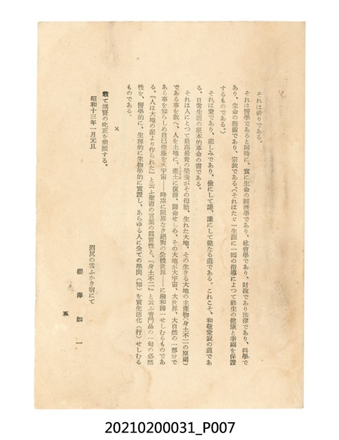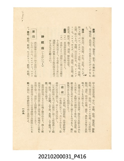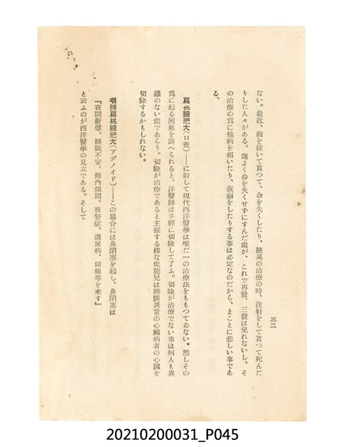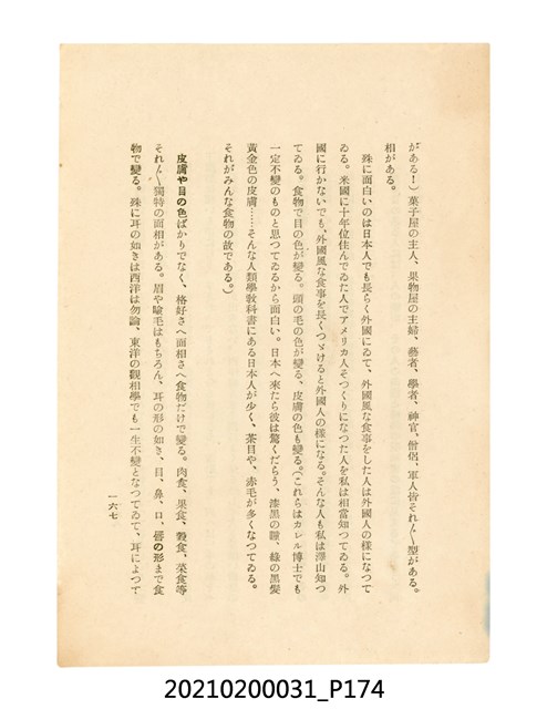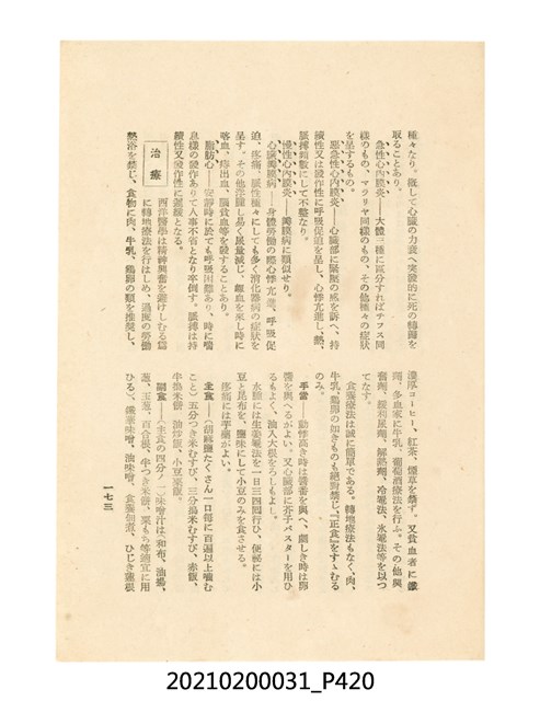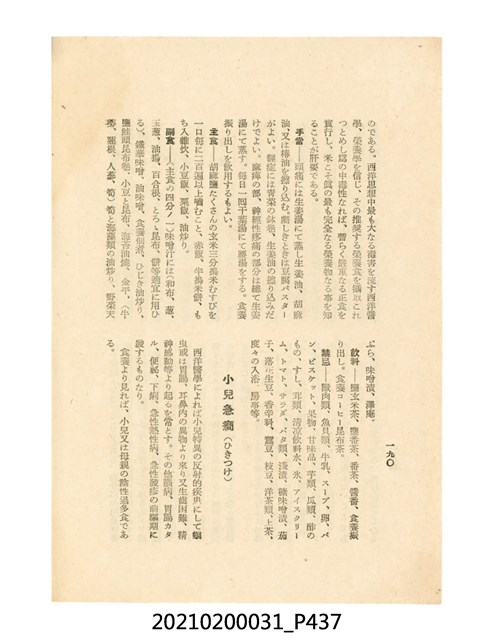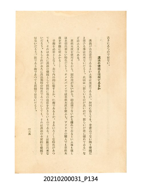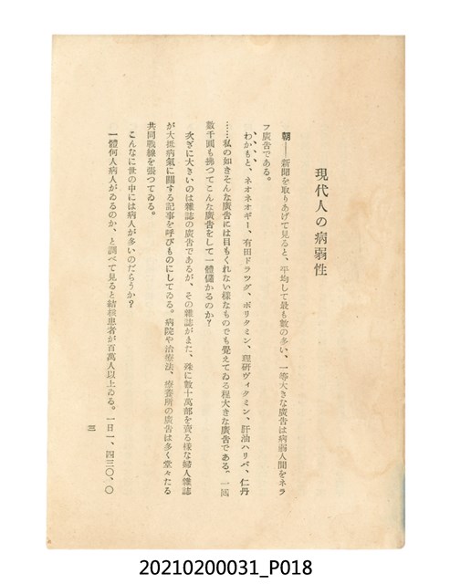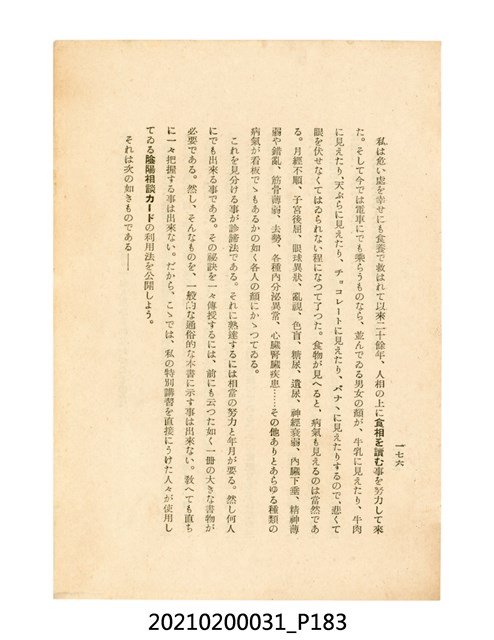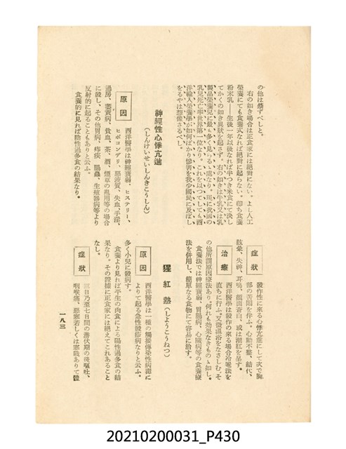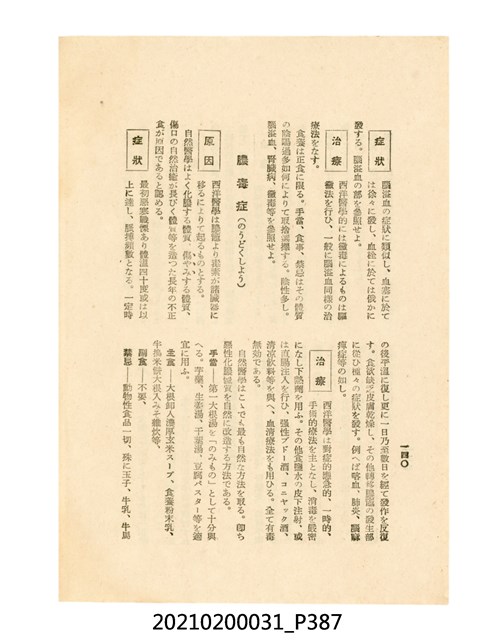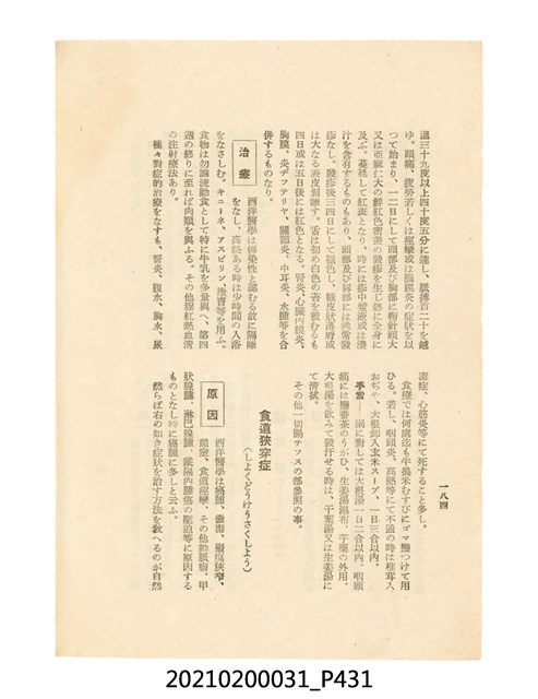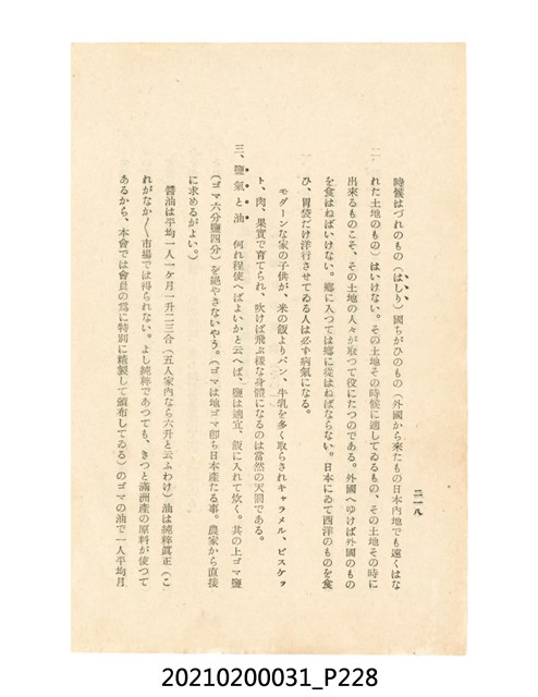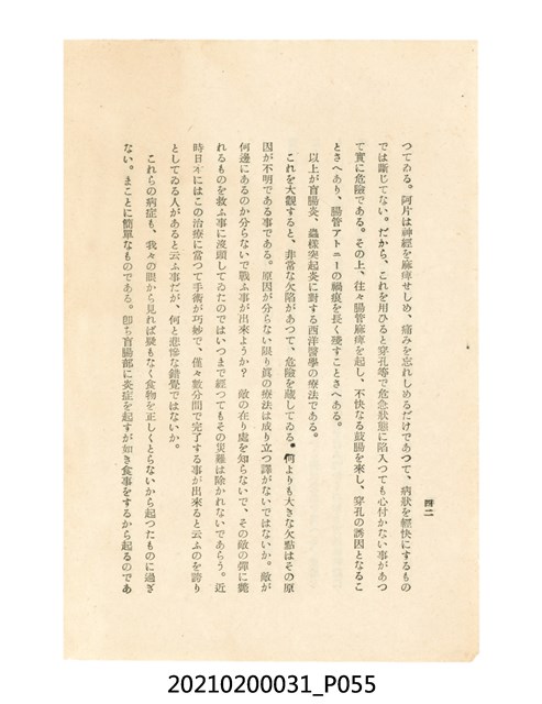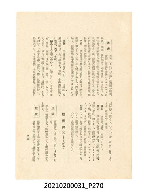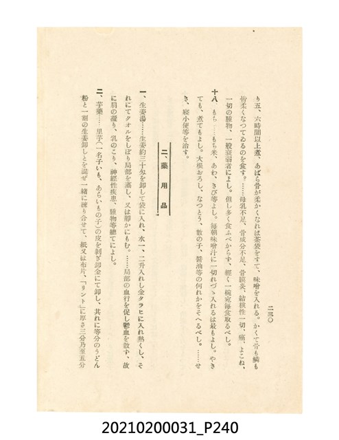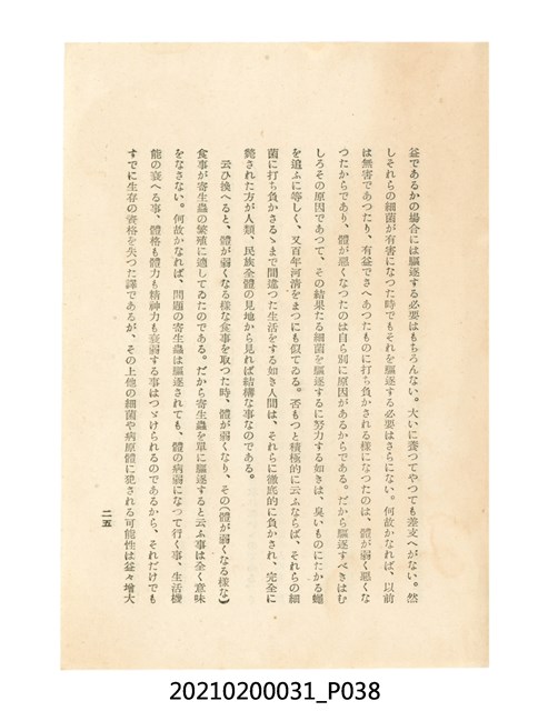 本件為櫻澤如一著《自然醫學》,副標題為:「日本食物療法總覽」,昭和14年(1939)10月20日4版,發行者為日本食養研究所,書籍共分五章,第一章為西洋醫學批判、第二章為「科學」的批判、第三章為新國民生活法的提倡、第四章為自然醫學的診斷法、第五章為食養療法、第六章為疾病的自然醫治法。書中內容主要為「自然醫學」的推廣。本文物為梁乃悅先生捐贈伯父梁梓義之日本時代個人物品。