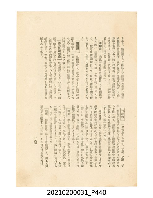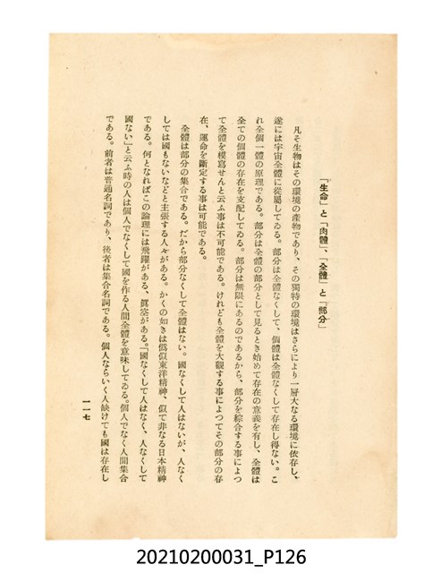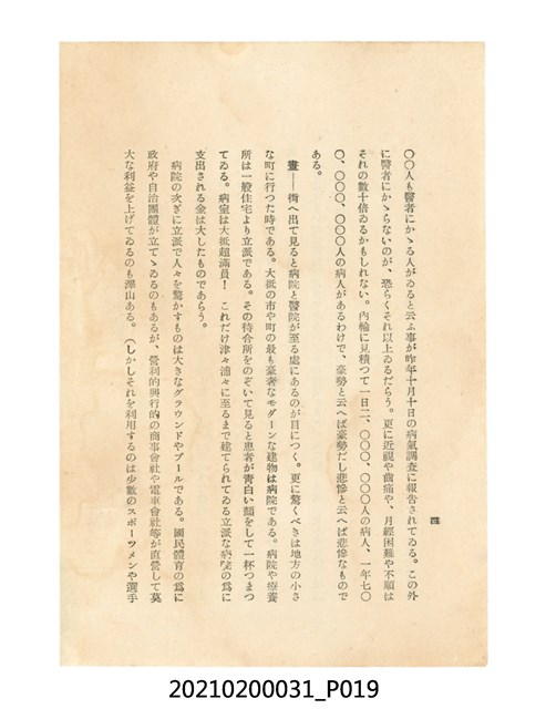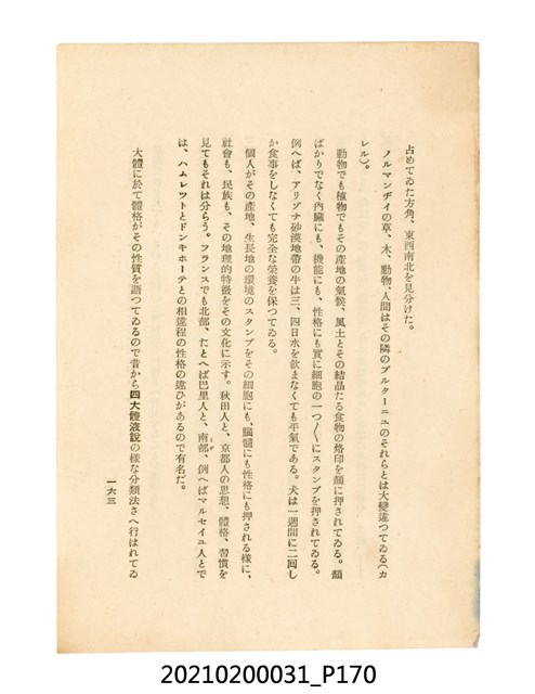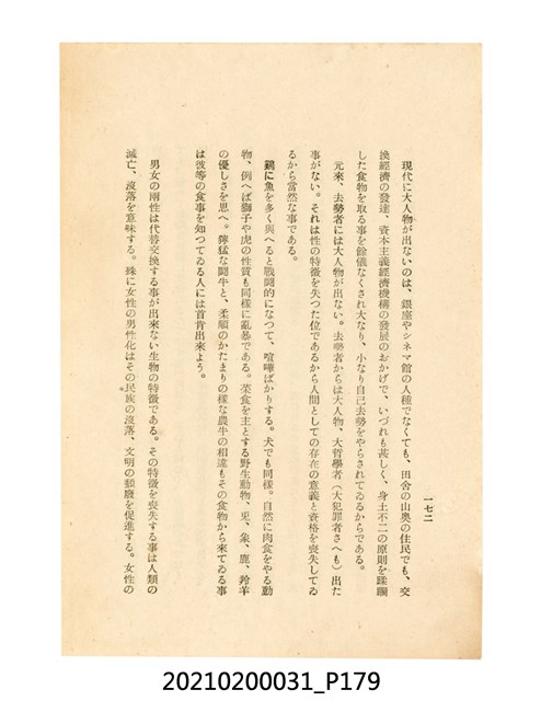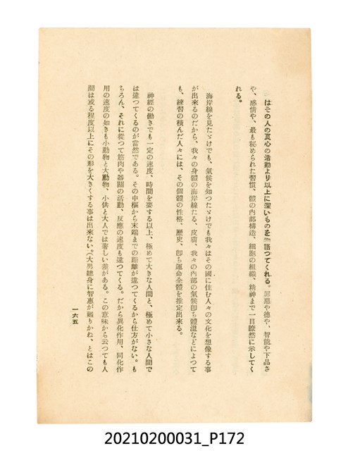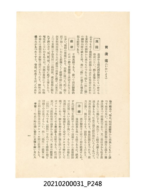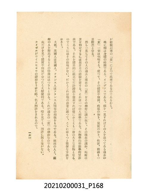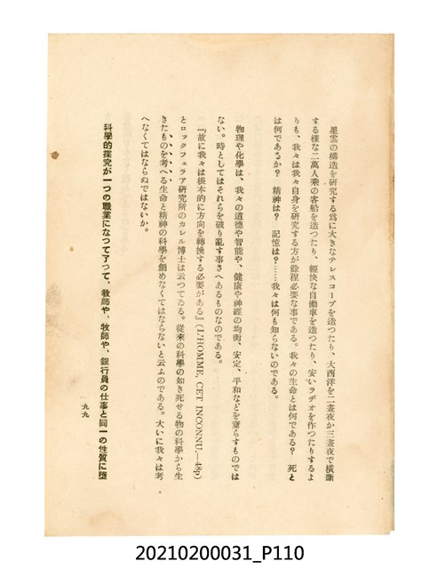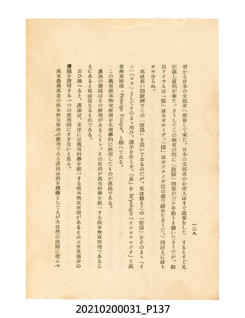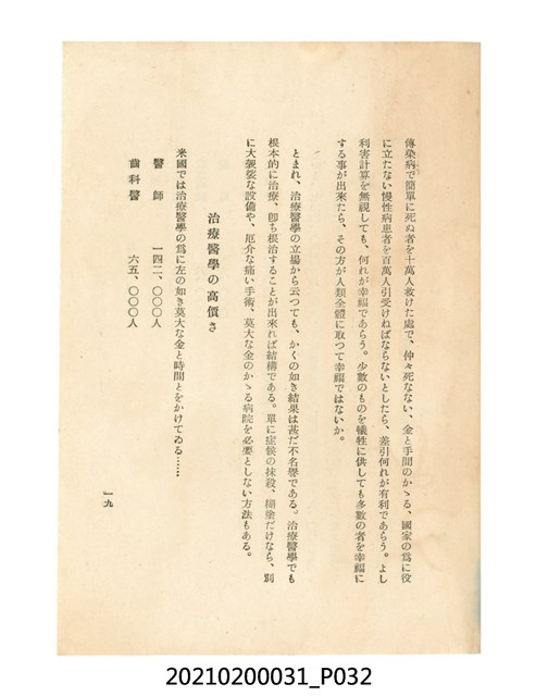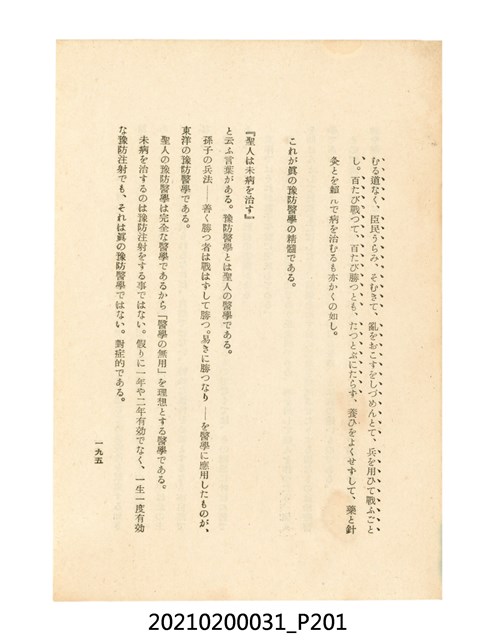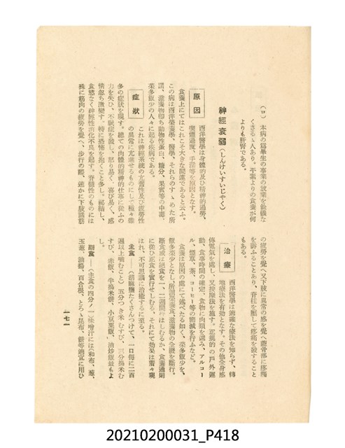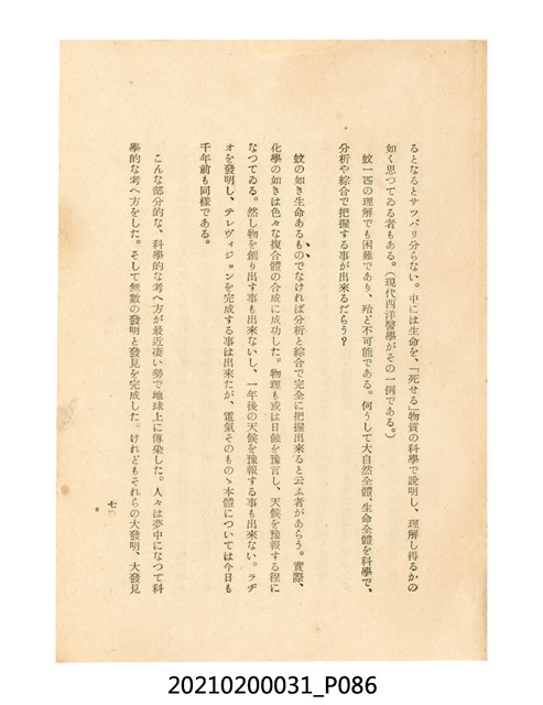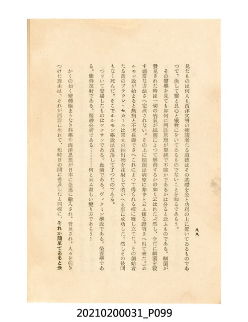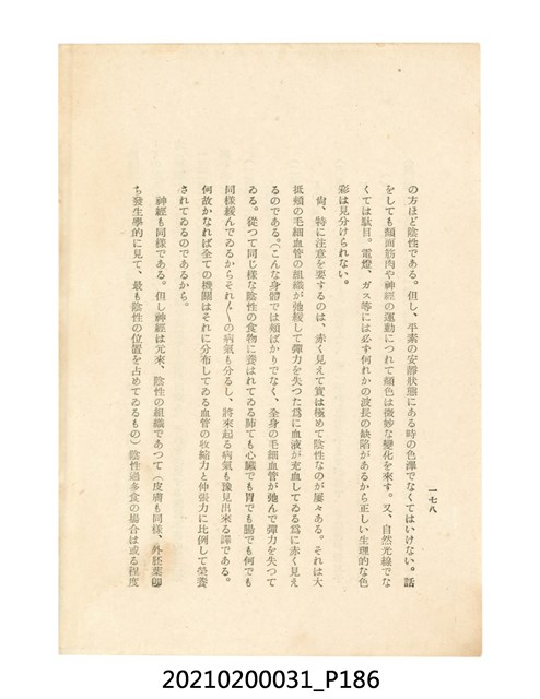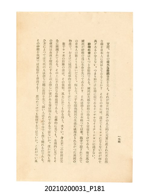 本件為櫻澤如一著《自然醫學》,副標題為:「日本食物療法總覽」,昭和14年(1939)10月20日4版,發行者為日本食養研究所,書籍共分五章,第一章為西洋醫學批判、第二章為「科學」的批判、第三章為新國民生活法的提倡、第四章為自然醫學的診斷法、第五章為食養療法、第六章為疾病的自然醫治法。書中內容主要為「自然醫學」的推廣。本文物為梁乃悅先生捐贈伯父梁梓義之日本時代個人物品。