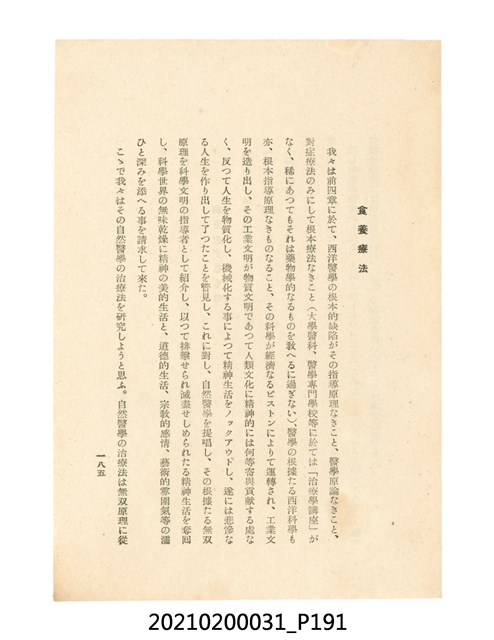 櫻澤如一、日本食養研究所、自然醫學、食療法