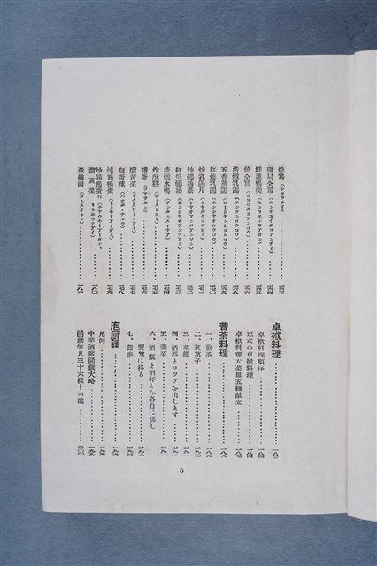 本件為村井政善著《支那料理》,昭和4年(1929)6月30日,東京誠文堂發行,扉頁處印有「臺北南警察署第22號 警察文庫」字樣章。包括儀式習慣、料理方式、魚肉料理、雞肉料理、其他肉類、蔬菜乾物等料理食譜等。本文物為梁乃悅先生捐贈伯父梁梓義之日本時代個人物品。