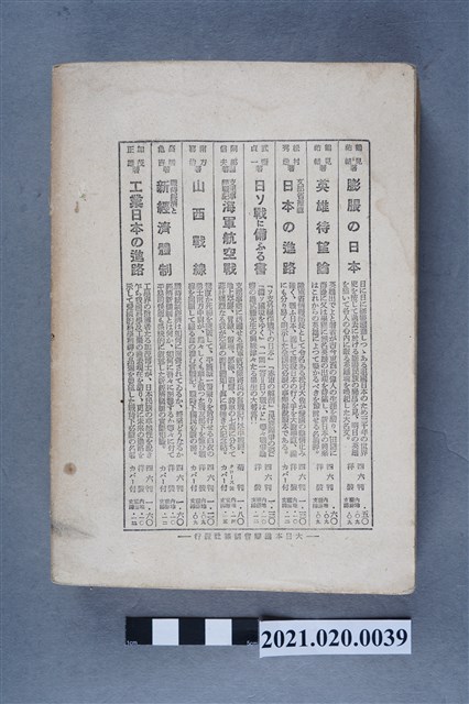 本件為竹田敏彥所著小說《熱情の翼》(熱情之翼),昭和16年(1941)10月30日第8版,由大日本雄辯會講談社發行,書籍外封已佚失。本文物為梁乃悅先生捐贈伯父梁梓義之日本時代個人物品。