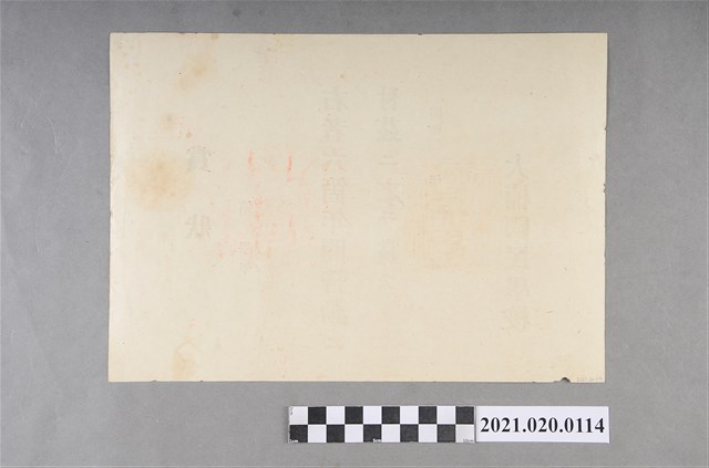 本件為梁梓霖大湳國民學校(今桃園市大成國民小學)初等科第六學年全勤賞狀,頒發時間為昭和20年(1945)3月23日,賞狀寫有「初等科第六學年 梁井清貞 右者六箇年間皆勤ニ付茲ニ之ヲ賞ス」字樣。大湳國民學校,前身為1923年由桃園郡八塊庄庄長葉炳丁申請設立之「八塊厝公學校大湳分教場」,至1928年獨立並更名為「大湳公學校」,1941年因應國民學校令再更名為「大湳國民學校」,戰後校名幾經變革,今為「桃園市大成國民小學」。