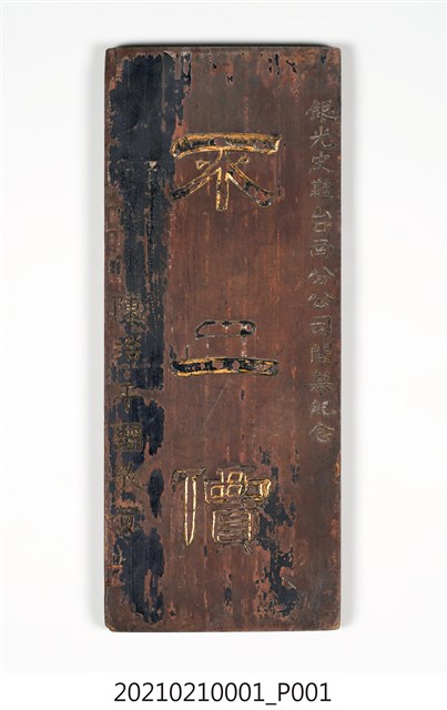 本案物件為不二價直式木牌,捐贈者是潘元石老師,該木製直式牌匾,用隸書寫著「不二價」,三個字上的金漆脫落嚴重,木牌背面有吊孔,應是店家懸掛於門牆之上使用已久造成的磨損,該牌匾是陳治平先生致贈銀光皮鞋台南分公司開幕紀念的直式不二價木牌,該物件不僅是一件贈禮,「不二價」也反映當時代的交易風氣與社會狀況。該木牌具有歷史價值且反映當時代社會間互動情況,因此希望捐贈給本館。