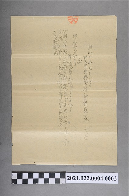 2021.022.0004.0002 昭和4年7月11日寫予豐原郡興農倡和會會長森禹吉文件