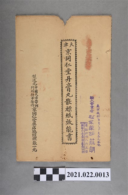 2021.022.0013 京同仁堂藥店出刊天津京同仁堂丹膏丸散標紙效能書