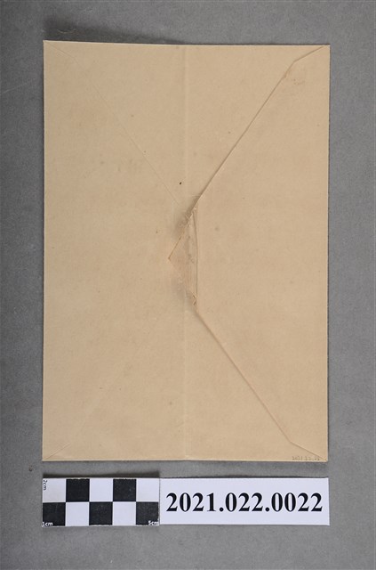 此份文物為郵件信封,收件對象為東京美術畫會,其地址位於東京市本鄉區三組町,信封材質為牛皮紙袋,而畫會組織於20世紀初期的日本紛紛創立,除了明治維新帶進的新思潮的影響外,也與工部美術學校、東京美術學校地設立有很大的關聯。