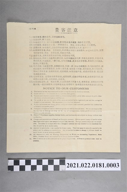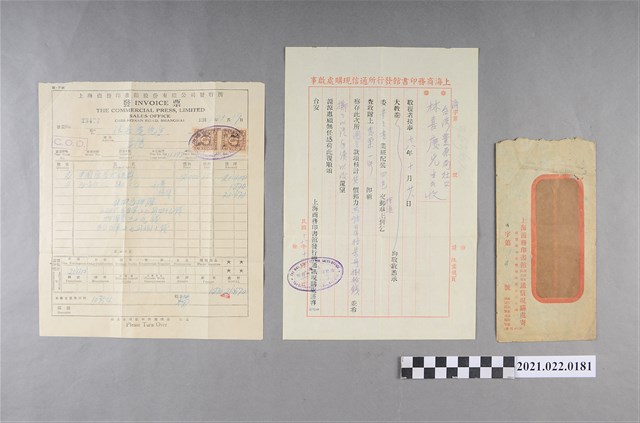 2021.022.0181 上海商務印書館股份有限公司通信現購處寄林喜慶啟事及發票