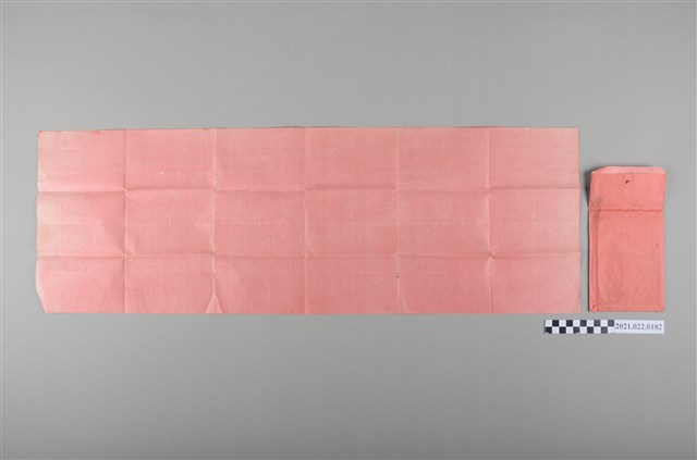 此文物共2件,其1為大正3年(1914)1月26日某人之弟定親及完婚的日課時辰單的外層信封,其2為社口庄澤華堂張○老所指示的定親及完婚日課時辰單,於右側處寫著大字「龍鳳吉祥」,內容則為各種定親及完婚的良辰吉時資料,左側則為撰寫此日課時辰單者的資料,皆為紅紙黑字寫之。