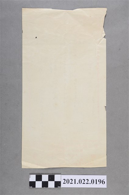 此文物為信件,寄件人為林少超,撰寫時間為昭和7年(1932)12月11日,收件者為金燦先生,信件下方有紅色印刷字樣,題名為「家嚴慈50雙壽內祝紀念箋」,下方註明壬申季冬(1932年12月)共9位李姓子女贈,地址為臺北市太平町3丁目12,電話為1986,信件內容為先讚揚金燦先生夫婦以及其子女,再感謝其贈予的金燦先生夫婦雙50大壽回禮紀念箋,再致歉因路途遙遠未前去祝壽。