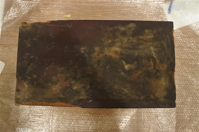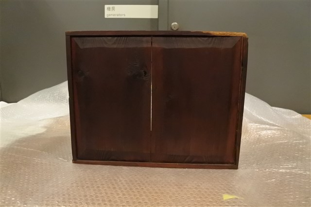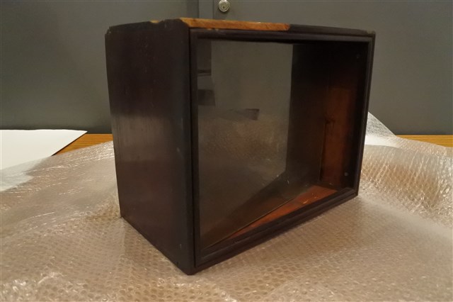 本物件為單側玻璃木質書櫃,包含木質櫃子及單片明玻璃,木櫃正面木框可抽出,整體外側有磨擦痕跡,內部有防蟲用的樟腦丸包裝。