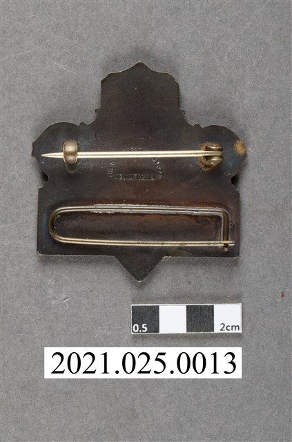 1. 本物件為張星賢參加1932年洛杉磯奧運會時配戴的選手別針,上頭書寫文字「Xth OLYMPIC LOS ANGELES」。