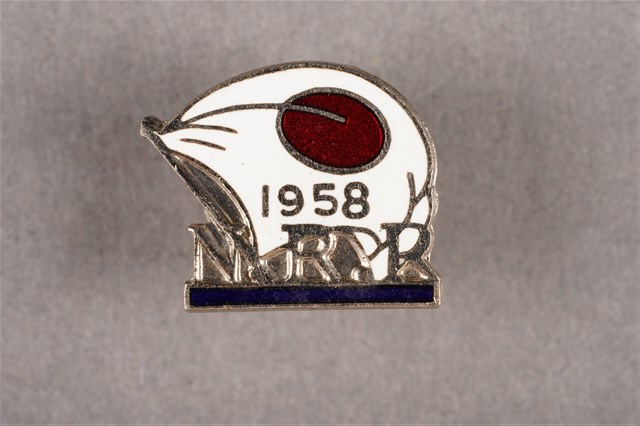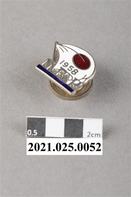 1.本物件為張星賢所藏1958年東京亞運N.R.R.紀念章,N.R.R.為日本陸上競技聯盟的簡稱日本陸連(にっぽん りくれん)的羅馬拼音縮寫(Nippon Rikuren)