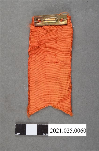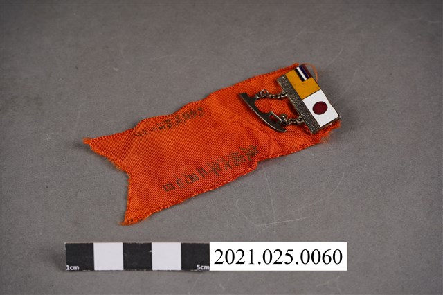 1.本物件為張星賢所藏紀念1939年滿鐵三十周年滿鐵招待日滿對抗水上競技大會紀念章。飾帶書寫文字意思為康德六年二月七日於安東鴨綠江聯盟