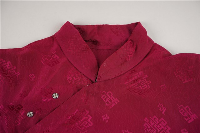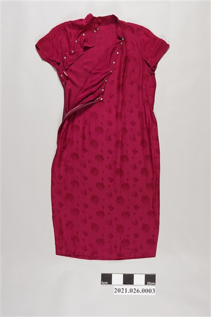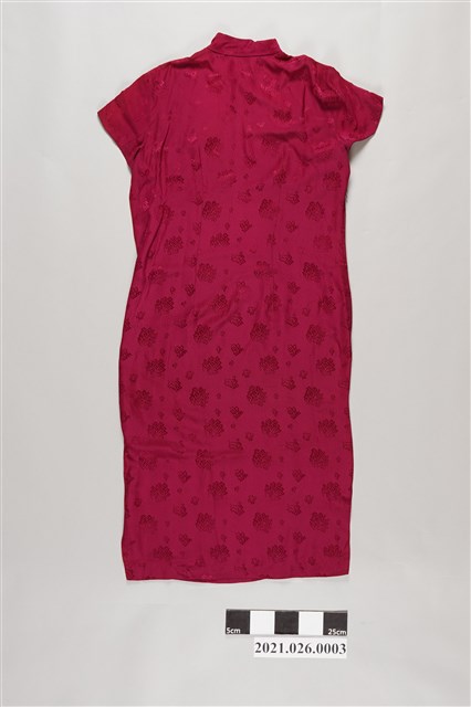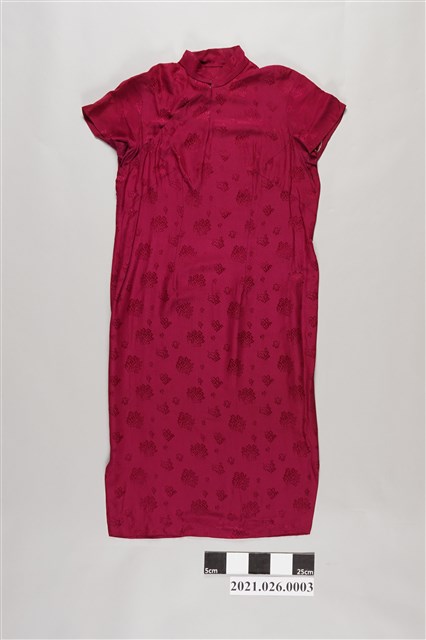 2021.026.0003 桃紅緹花棉地立領短袖夏旗袍