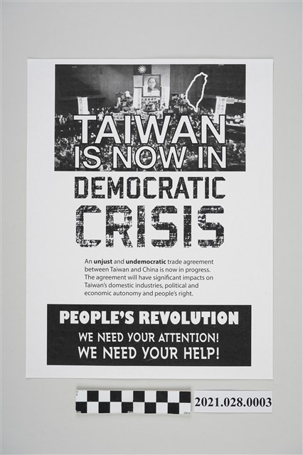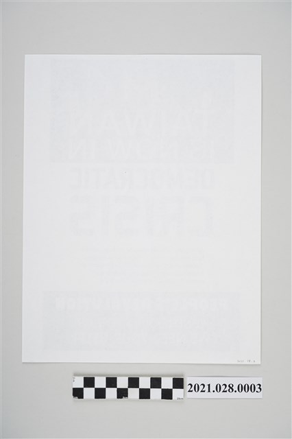 2021.028.0003 印有「TAIWAN IS NOW IN DEMOCRATIC CRISIS 」的文宣
