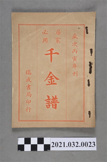 2021.032.0023 臺中瑞成書局《千金譜》