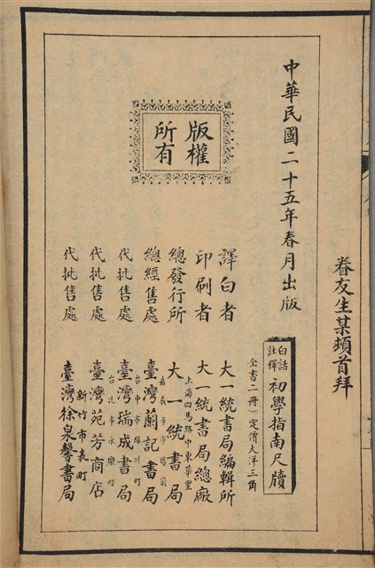 黃丙寅上海大一統書局《白話註解初學尺牘指南》卷四