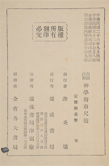 2021.032.0063 臺中瑞成書局《初學指南尺牘》