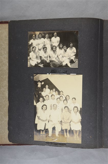 本件為迎產婦人科職員室內合照。照片中共計有19人,其中前排左二為迎諧,第二排右二為王碧蘭。除前排右二女性及樓梯上之小女孩外,其他人皆穿著白色醫護服。拍攝地點推測應為迎產婦人科病院內,木質地板,木造樓梯。